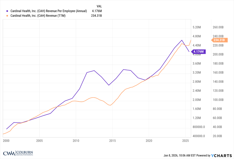 While I’m not a Cardinal employee and haven’t been since 2013, I still follow the company closely as a past employee, investor and for my clients who continue to be employees like yourself. If you’re a member of finance, the executive leadership team, etc., these charts might not be new information. For the rest of you, I hope it offers some helpful additional context about Cardinal.