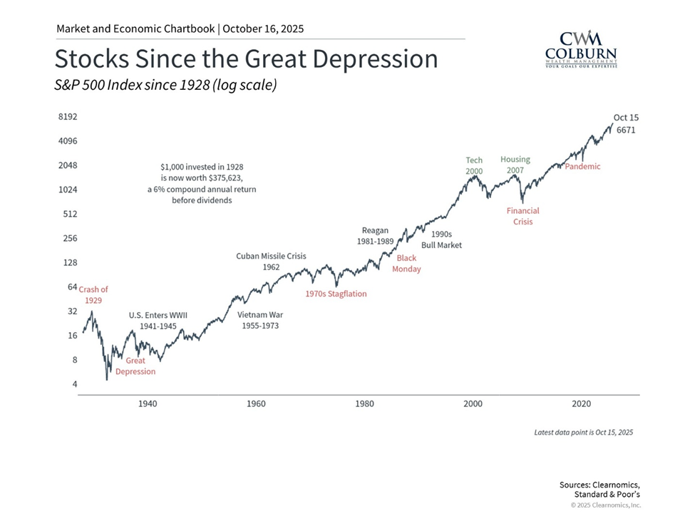 History shows that time rewards patience—even during periods of high valuations. Zoom out, and even dramatic events like the dot-com crash or housing crisis look like blips. Investors who stayed the course were rewarded.