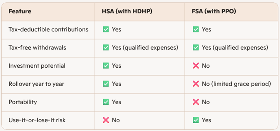 During healthcare election season, many Cardinal Health employees face a familiar decision: choosing between a high-deductible health plan (HDHP) with a Health Savings Account (HSA), or a traditional PPO plan with a Flexible Spending Account (FSA). Both offer tax advantages—but they serve different purposes, and the right fit depends on how you use healthcare, save, and plan for the future.